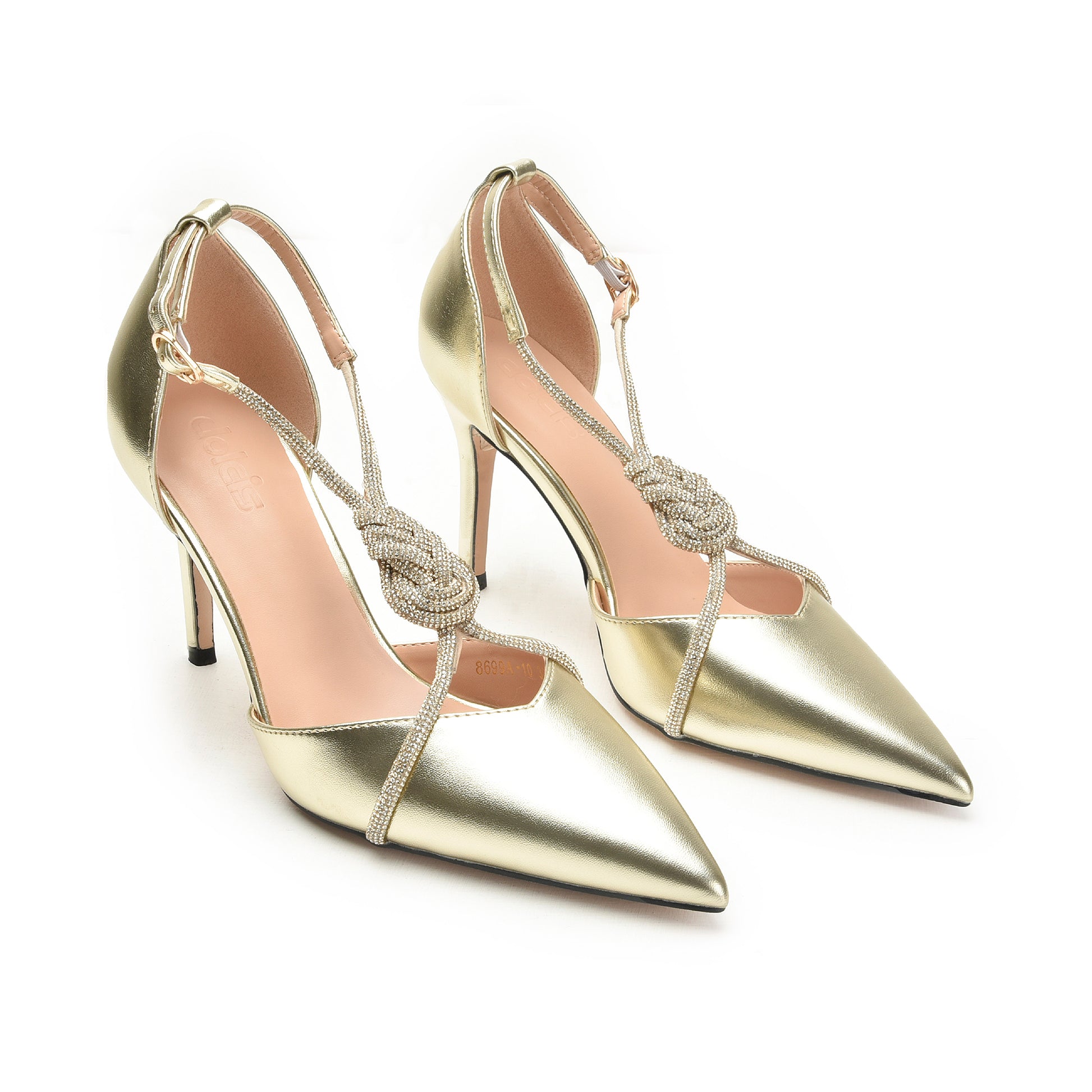 Gold Metallic Rhinestone Strap Heels | 450N-X