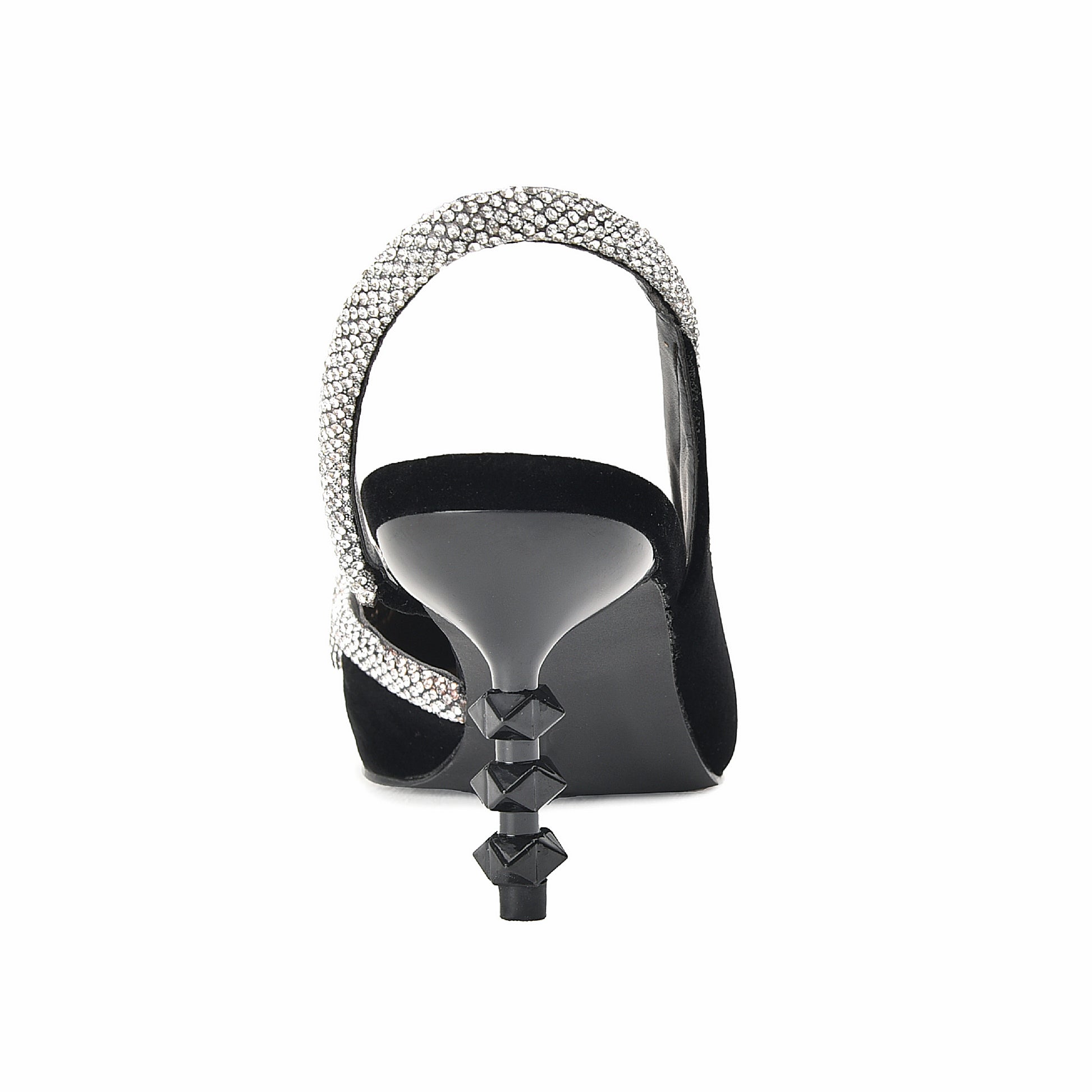 Elegant Black Velvet Slingback Heels with Rhinestone Bow | 469L-C
