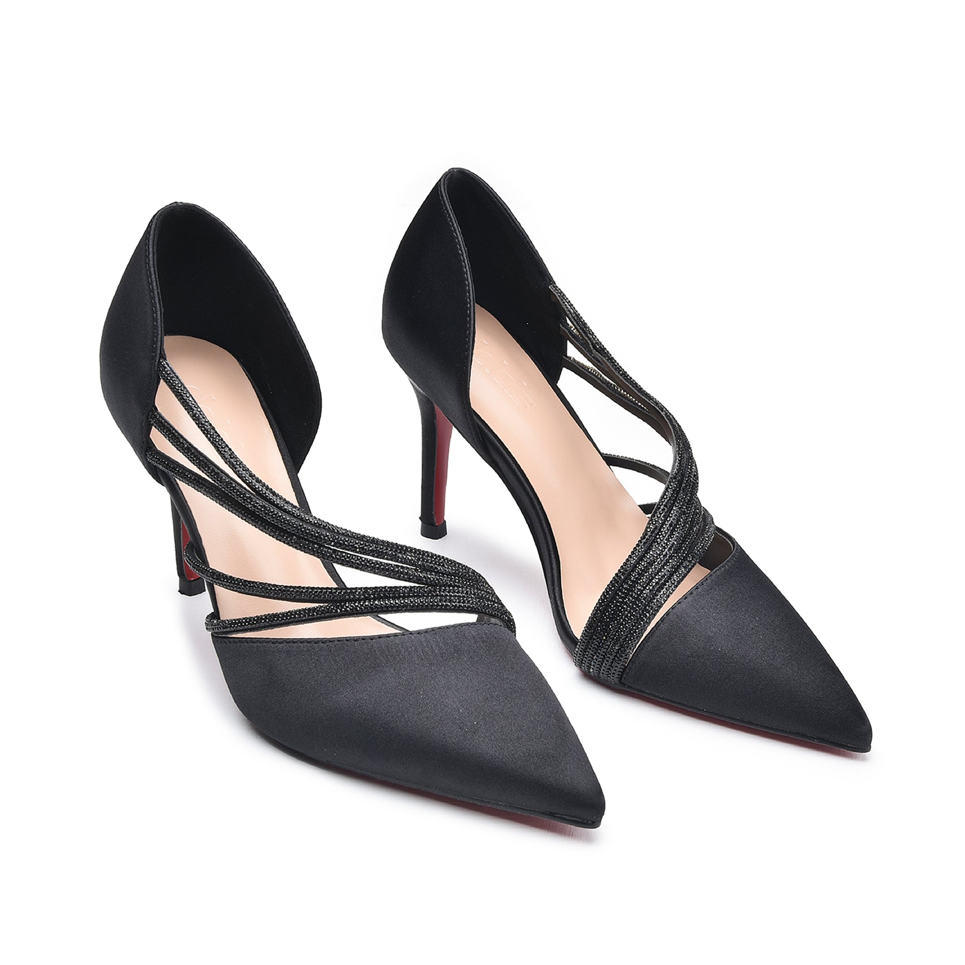 Elegant Black Strappy High Heel Pumps | 411N-C
