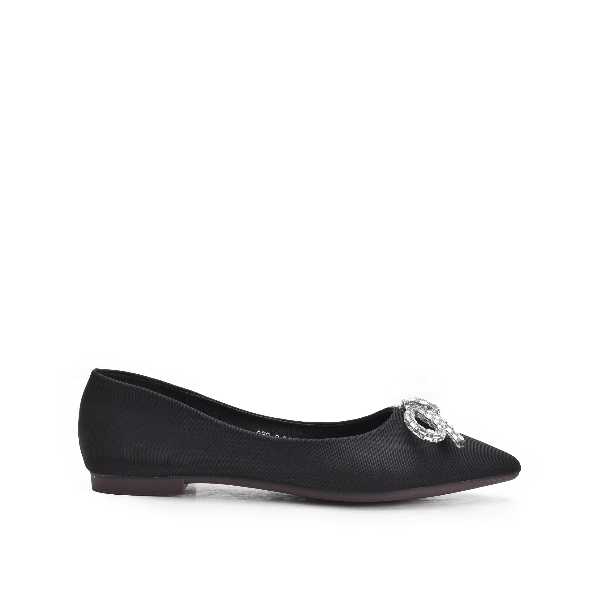 Chic Black Embellished Ballet Flats Slippers | 425N-C