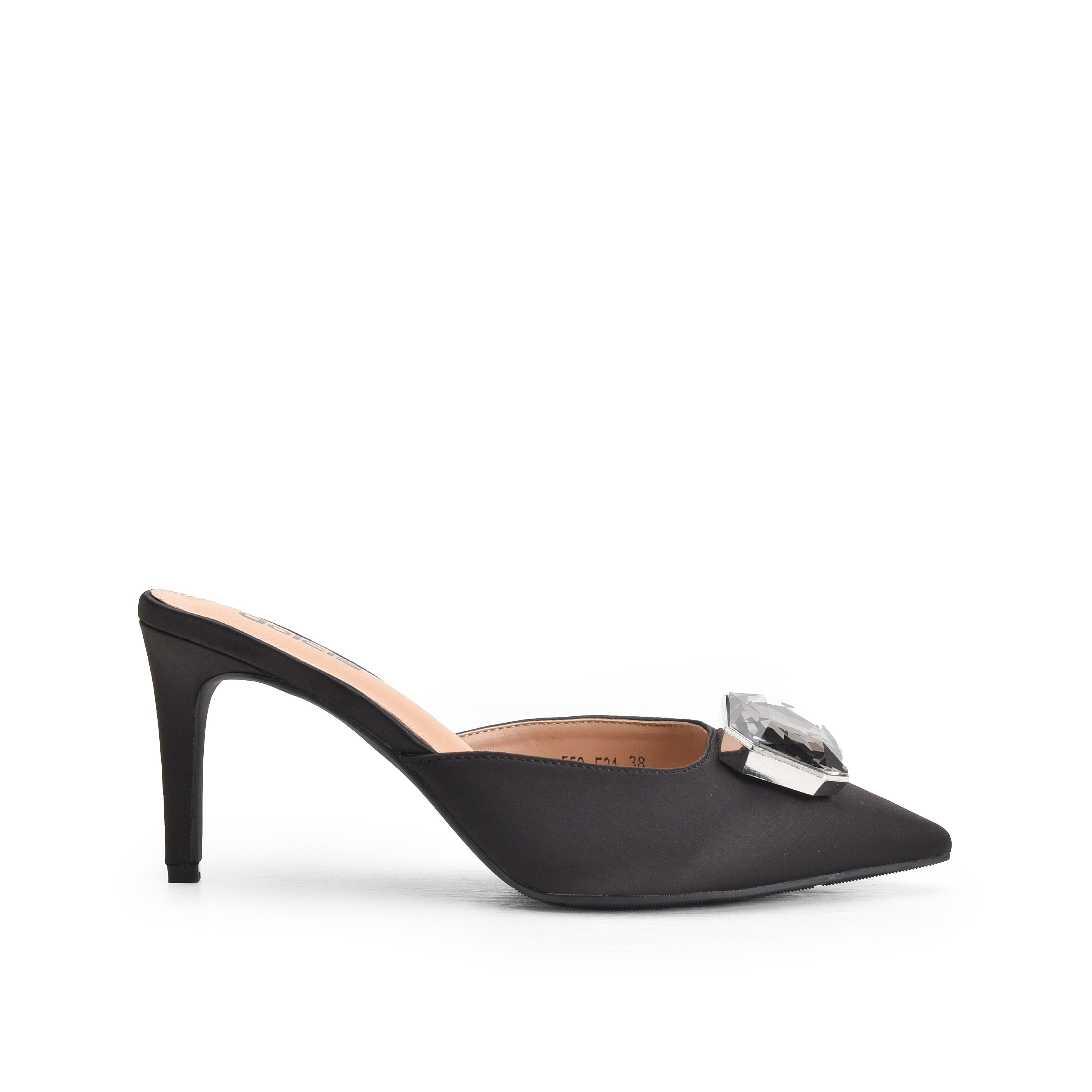 Bold Pink Embellished Kitten Heel Mules | 427N-P