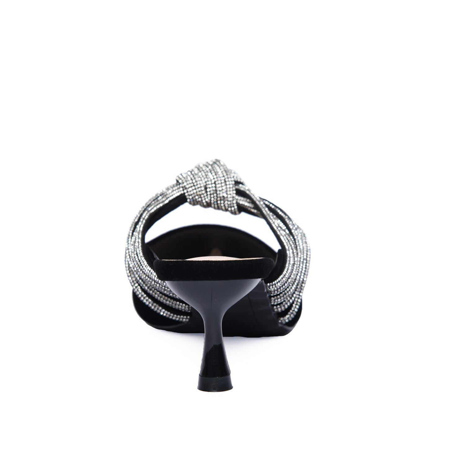Black Velvet Slip-On Heels with Rhinestone Knot | 481L-C