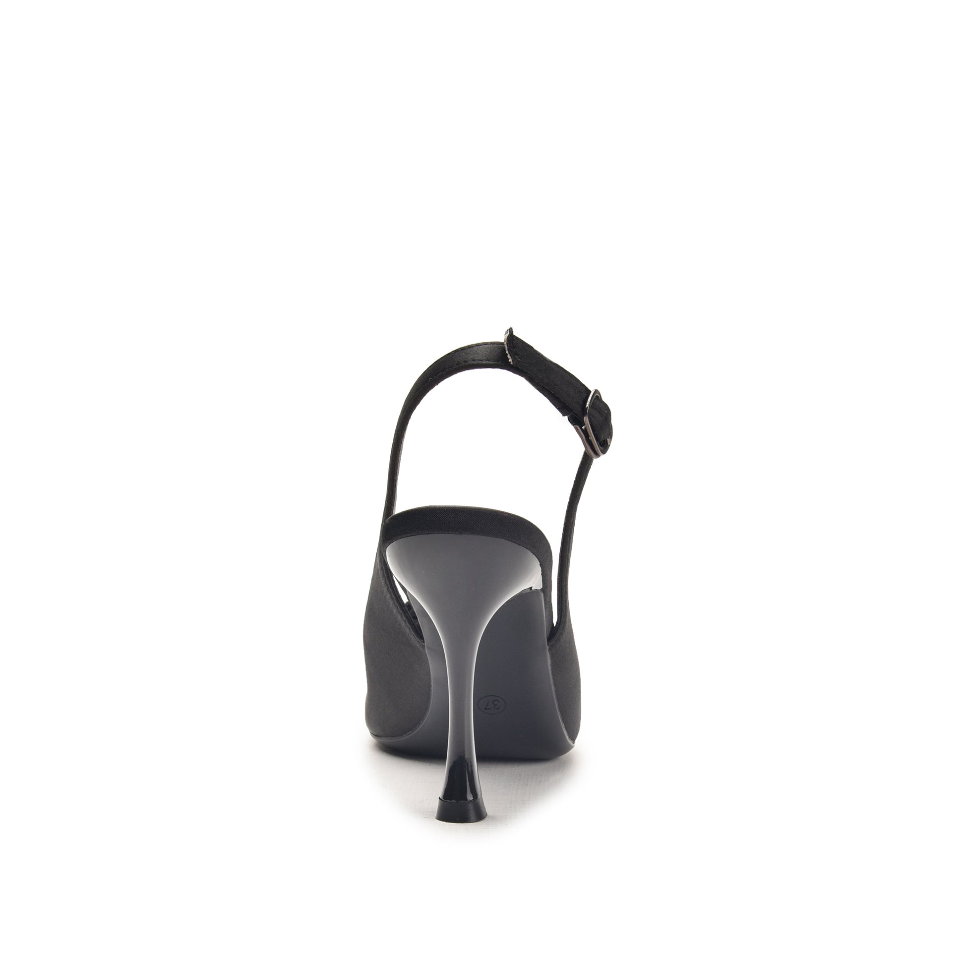 Black Slingback Heels with Floral Embellishment | 484N-C