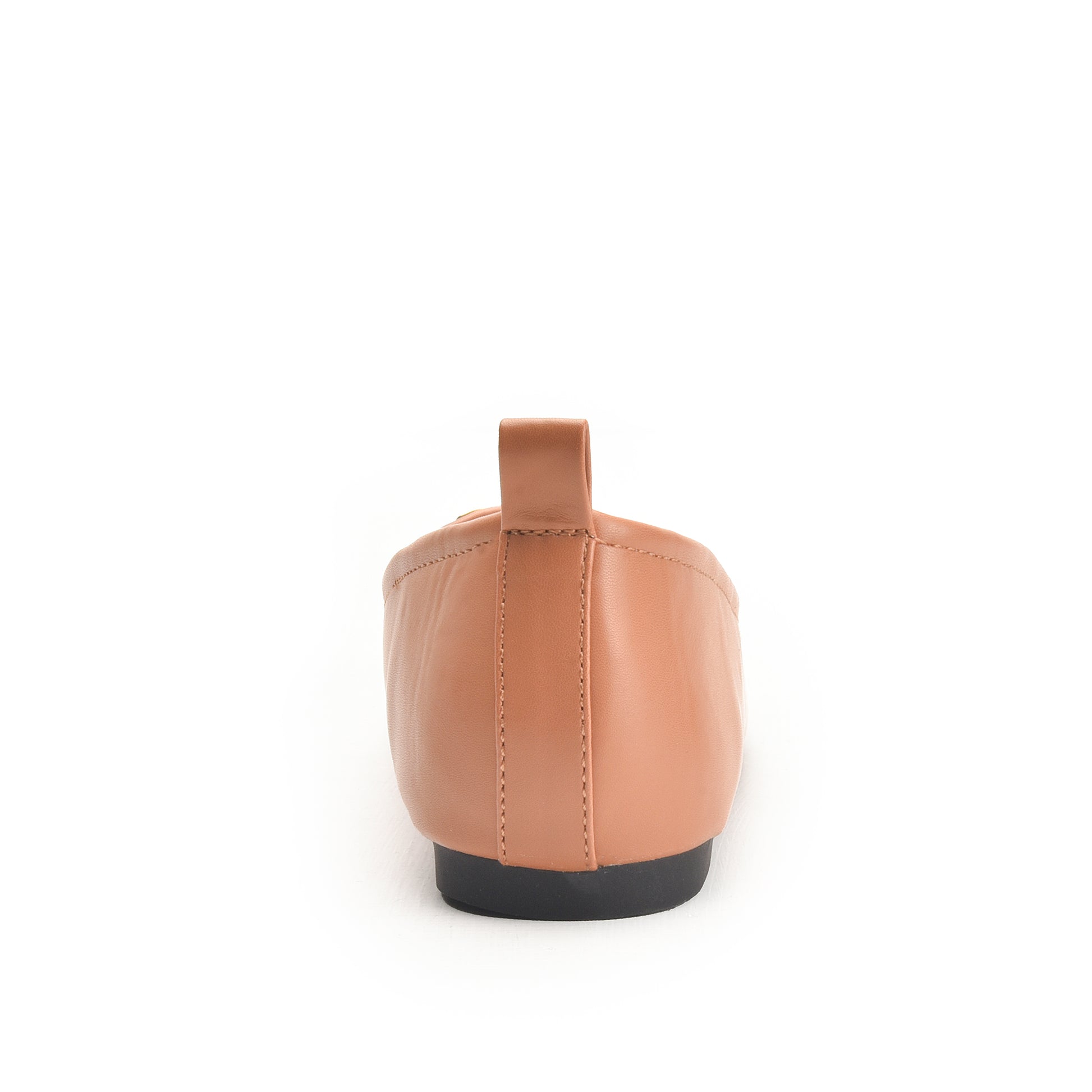 Tory Burch Brown Flat Pumps with Gold Logo | 494N-F