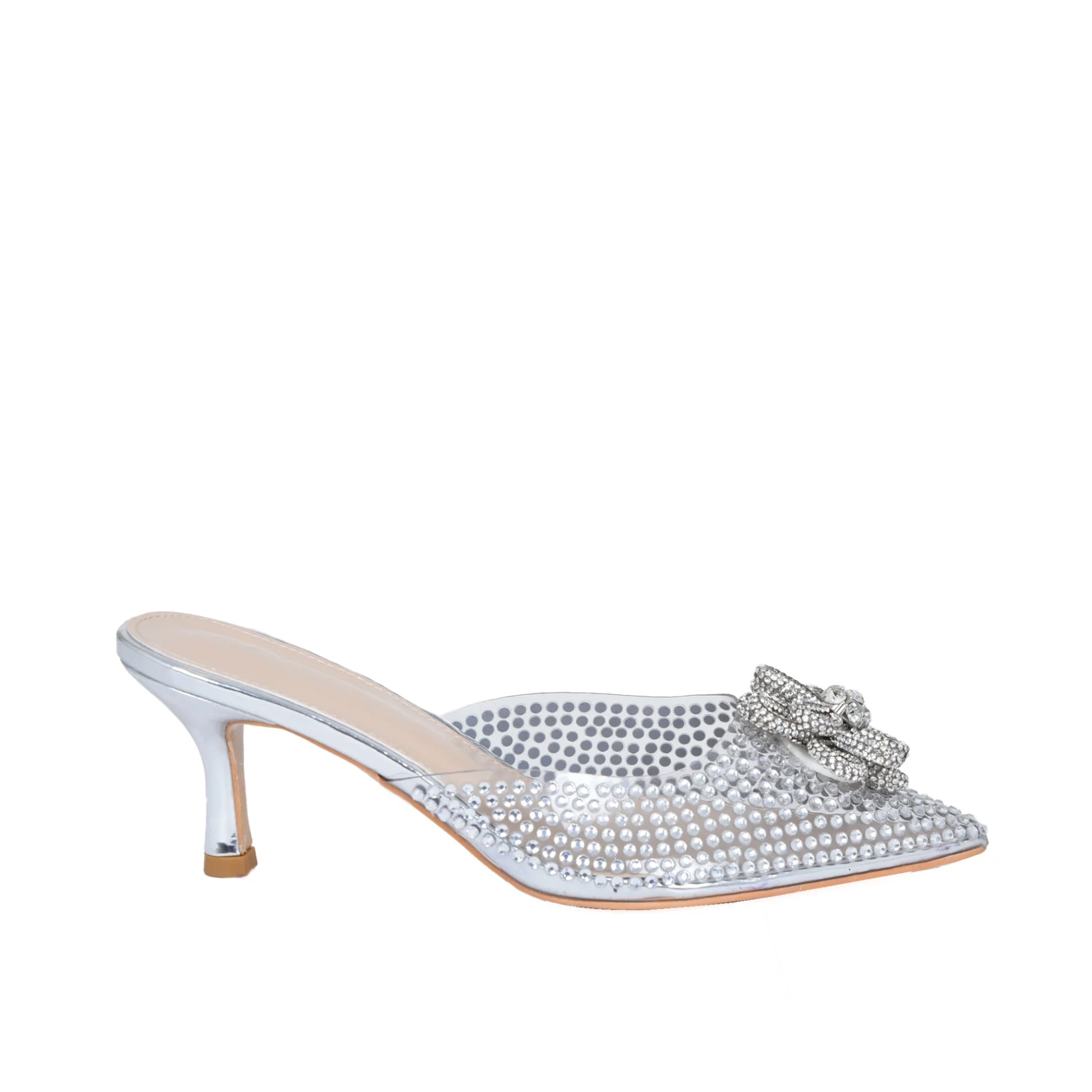 Silver Studded Mules with Crystal Bow | 495L-S