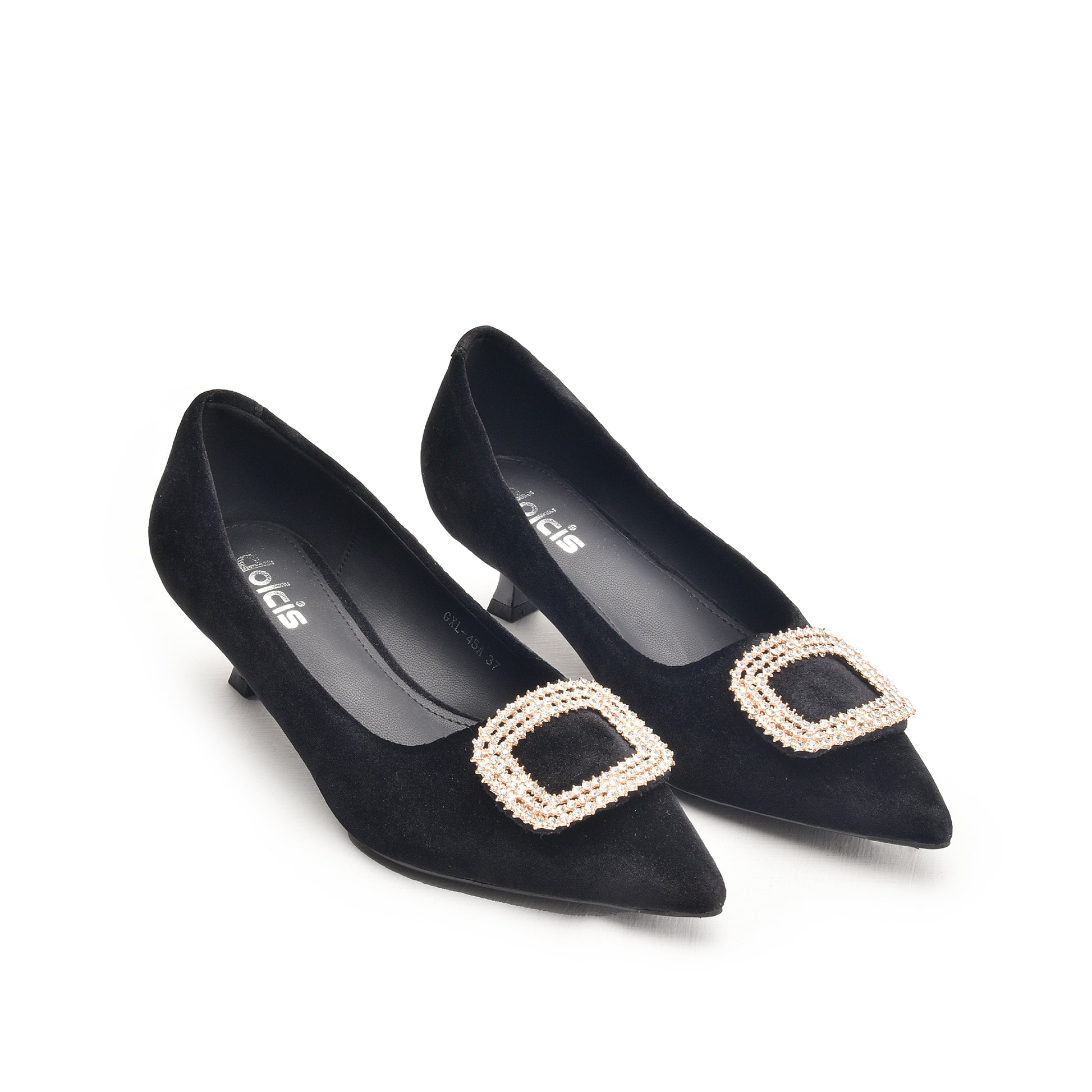 Black Kitten Heels with Embellished Buckle | 496N-C