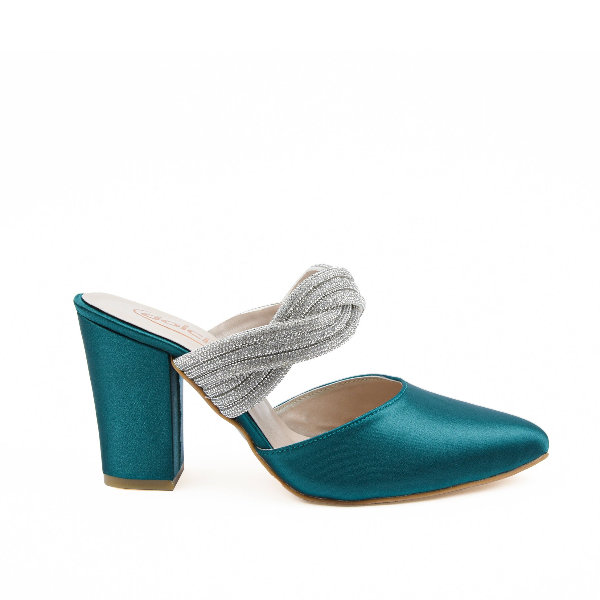 Teal Satin Block Heels with Twisted Strap | 497L-K