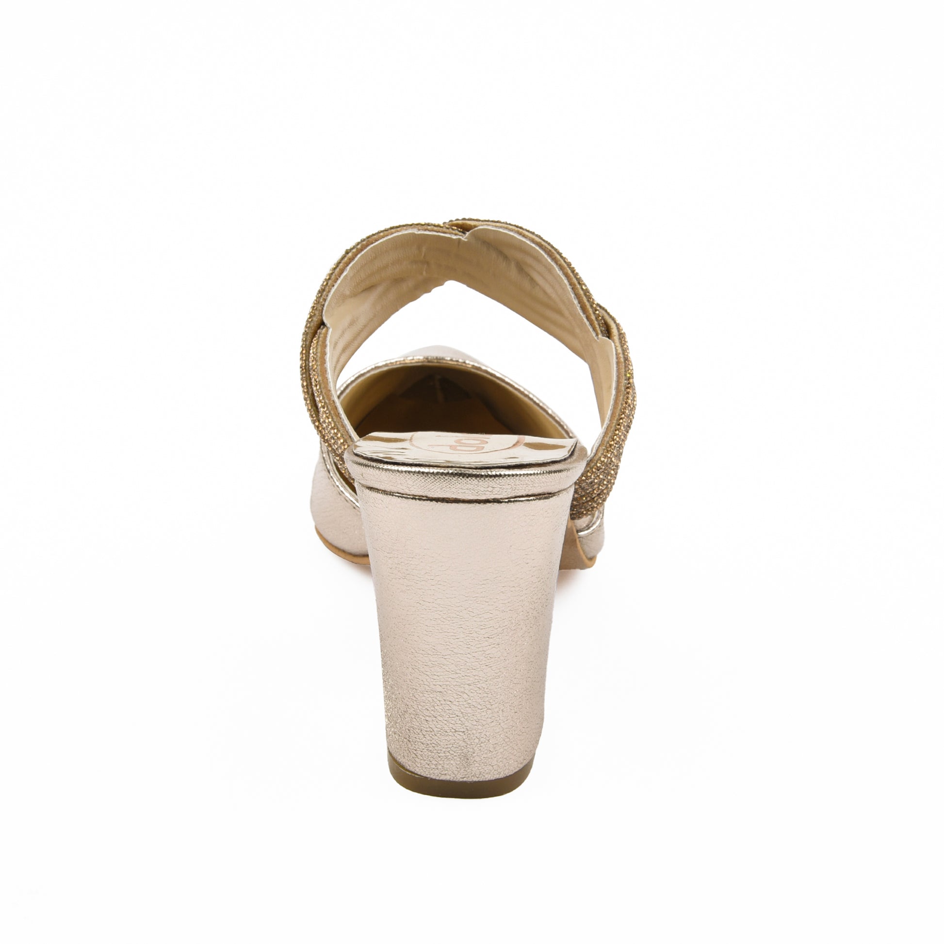 Silver Metallic Block Heels with Twisted Strap | 497L-X