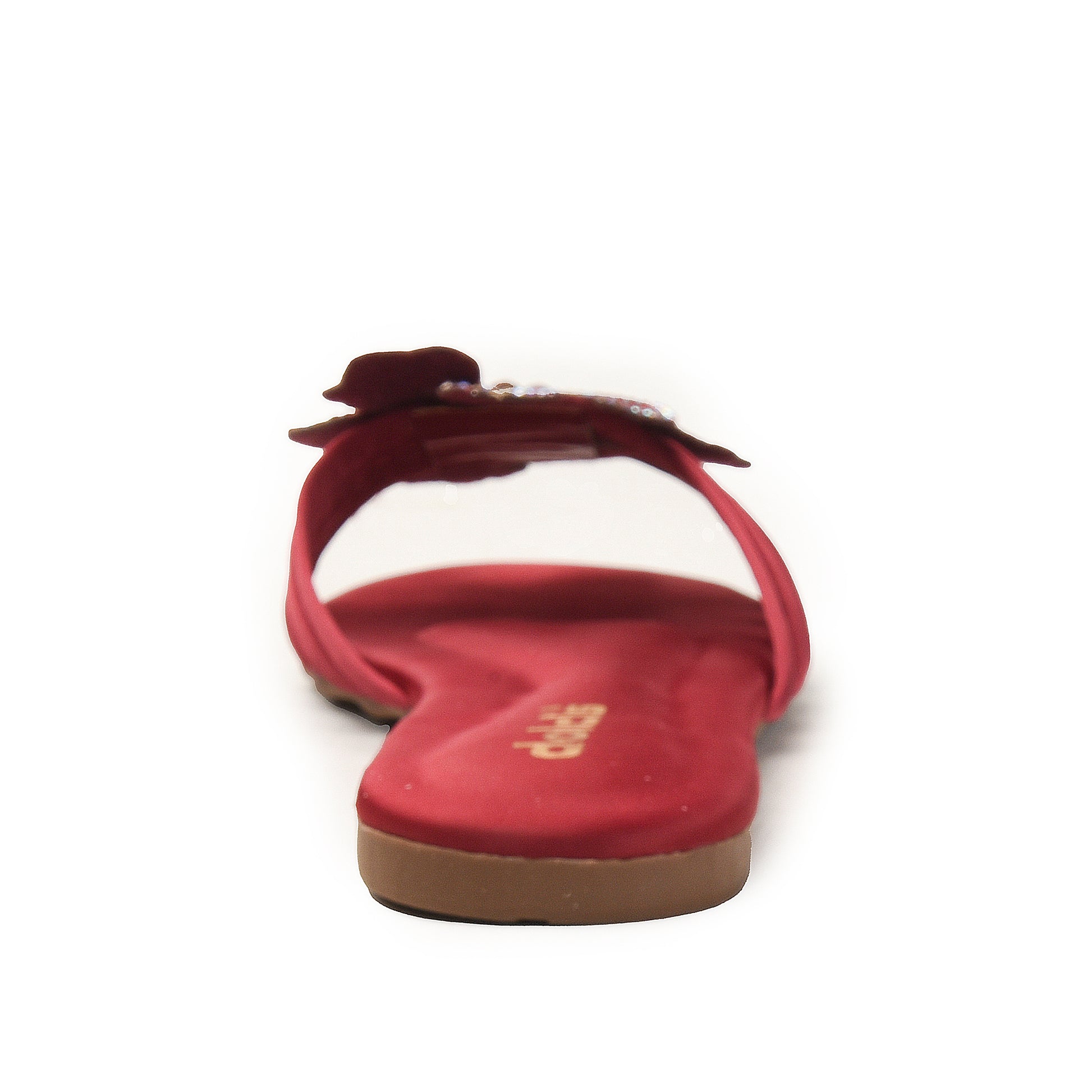 Red Floral Flats with Rhinestone Detail Slippers| 519M-M