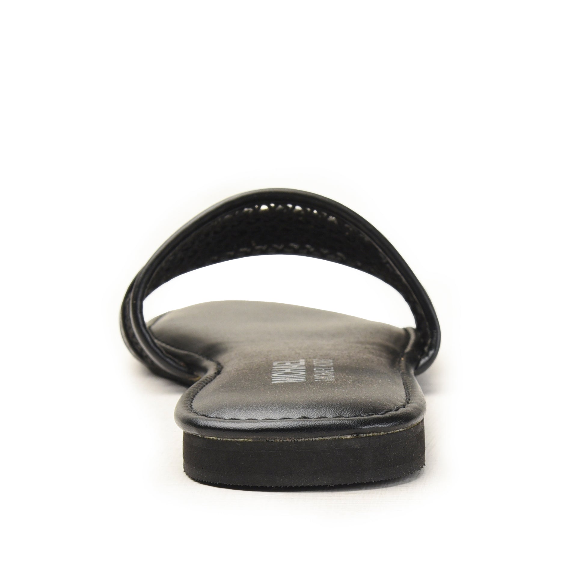Black Woven Slide Flats with Buckle Slippers| 521M-C