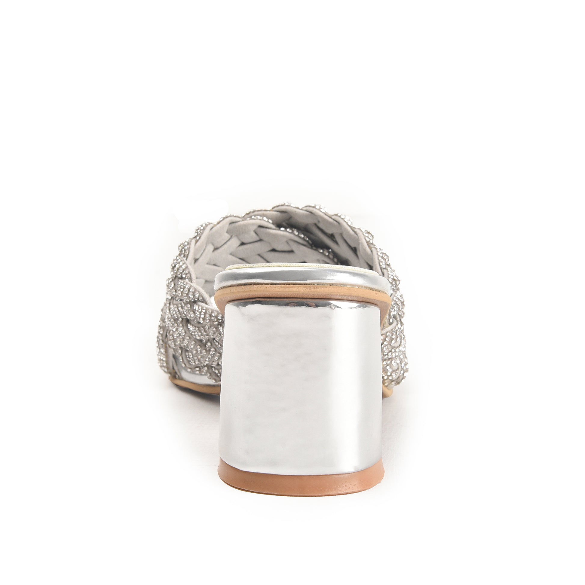 Silver Braided Block Heel Sandals for Women | 573L-S