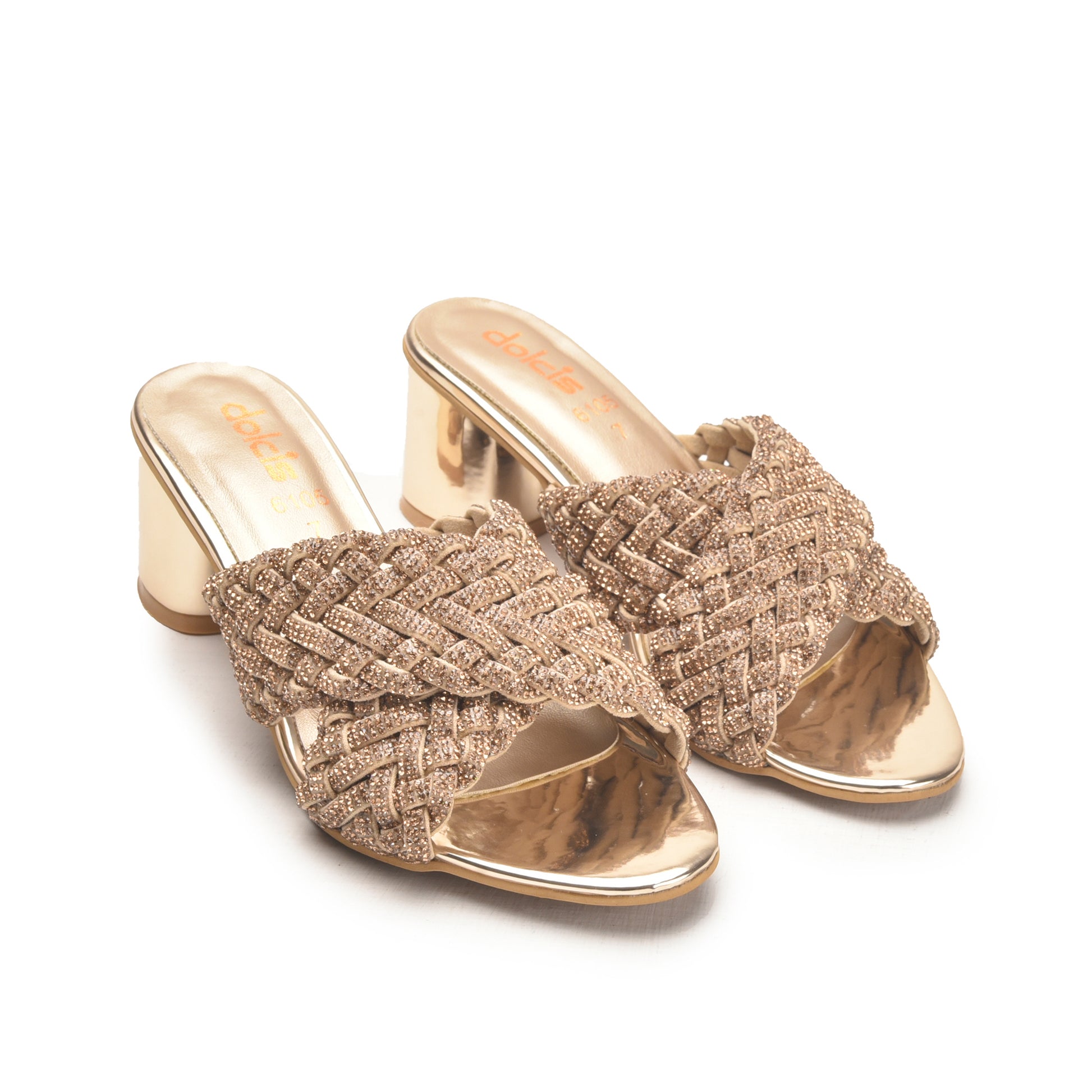 Golden Braided Block Heels for Women | 573L-X Dolcis
