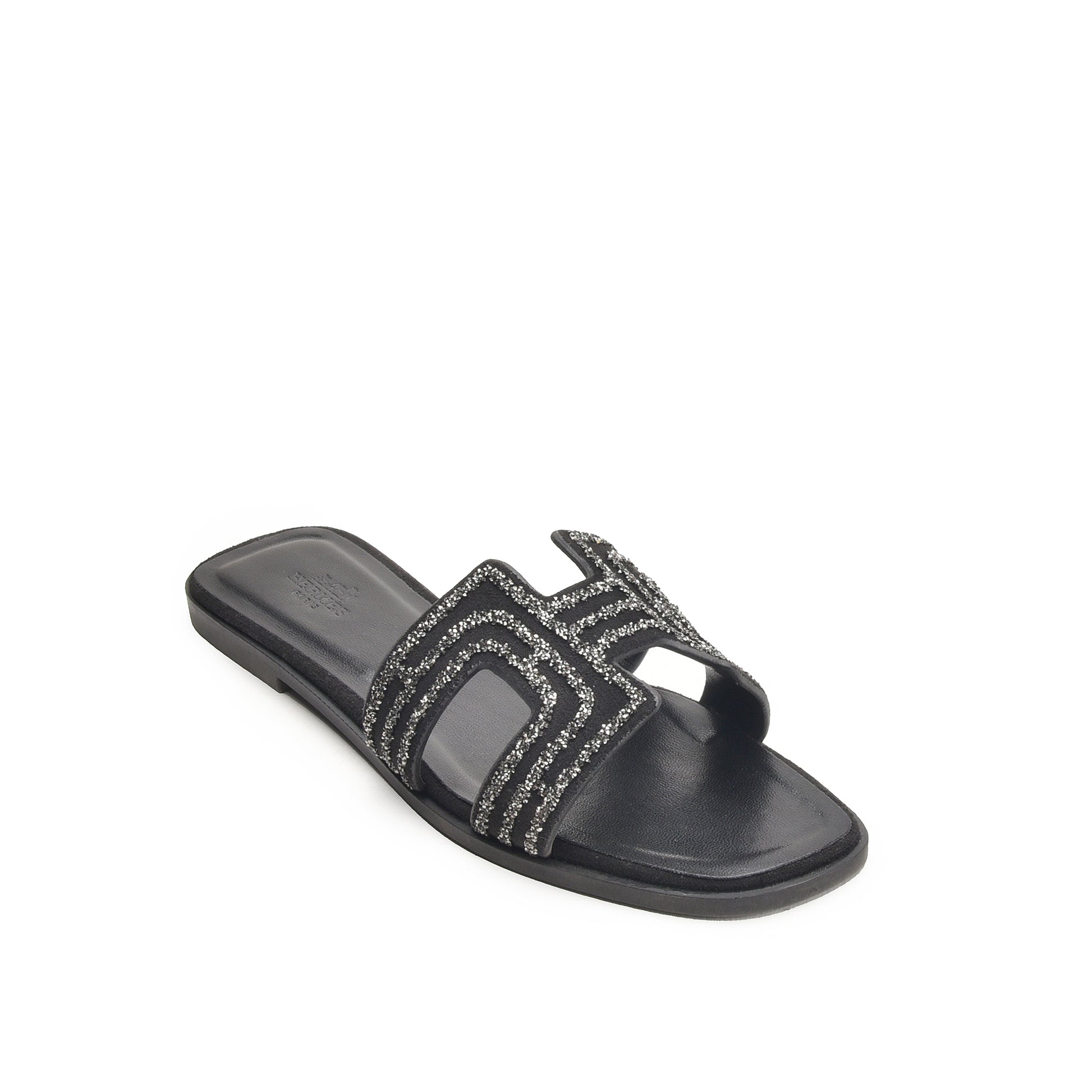 Black Glitter Strap Flats Slippers | 581L-C Dolcis