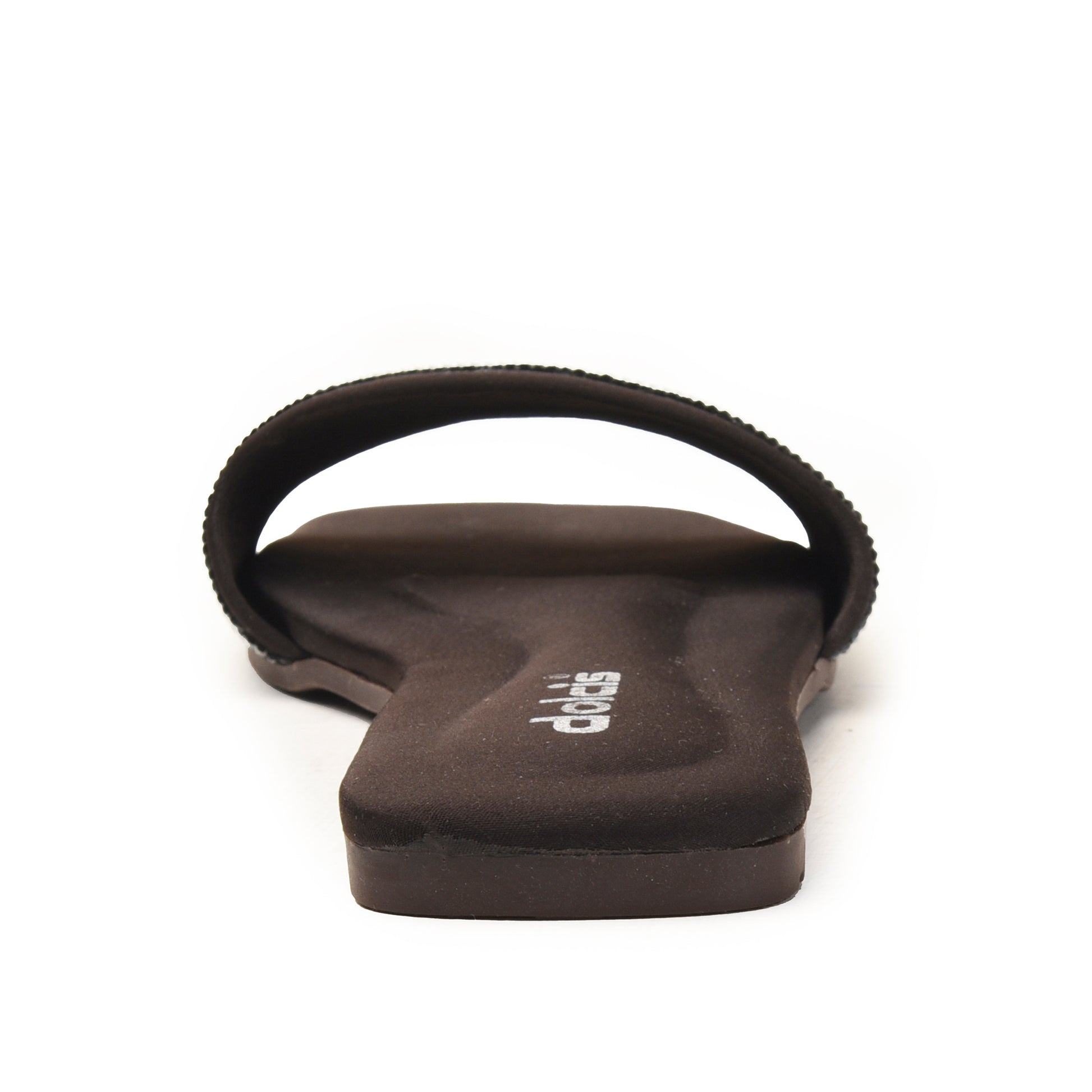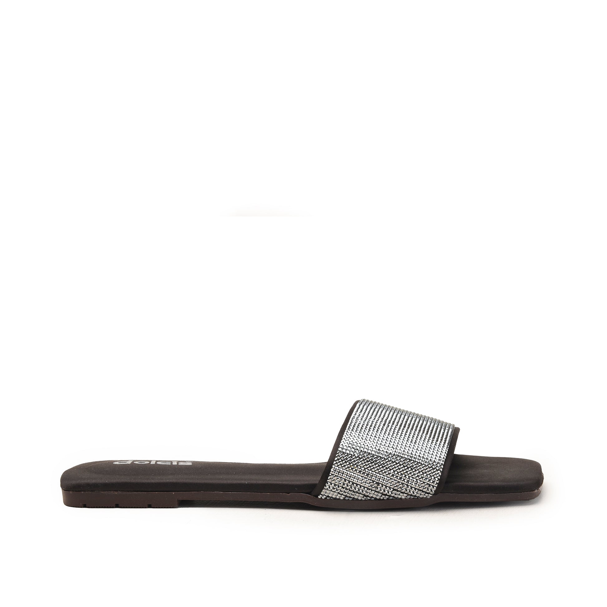 Black Flats with Silver Embellished Strap Slippers| 594L-C