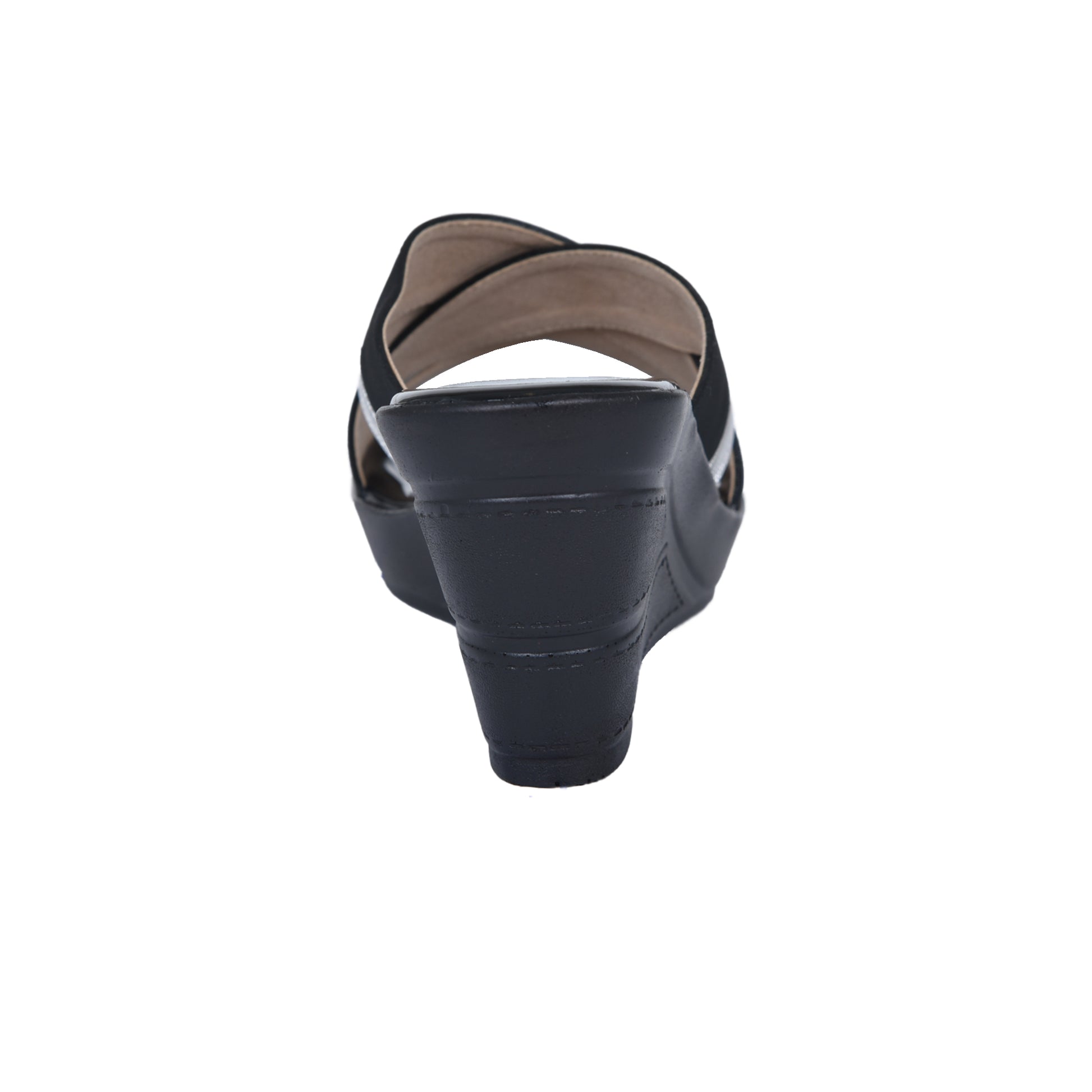 Stylish Black & Silver Wedge Heels | 595H-C