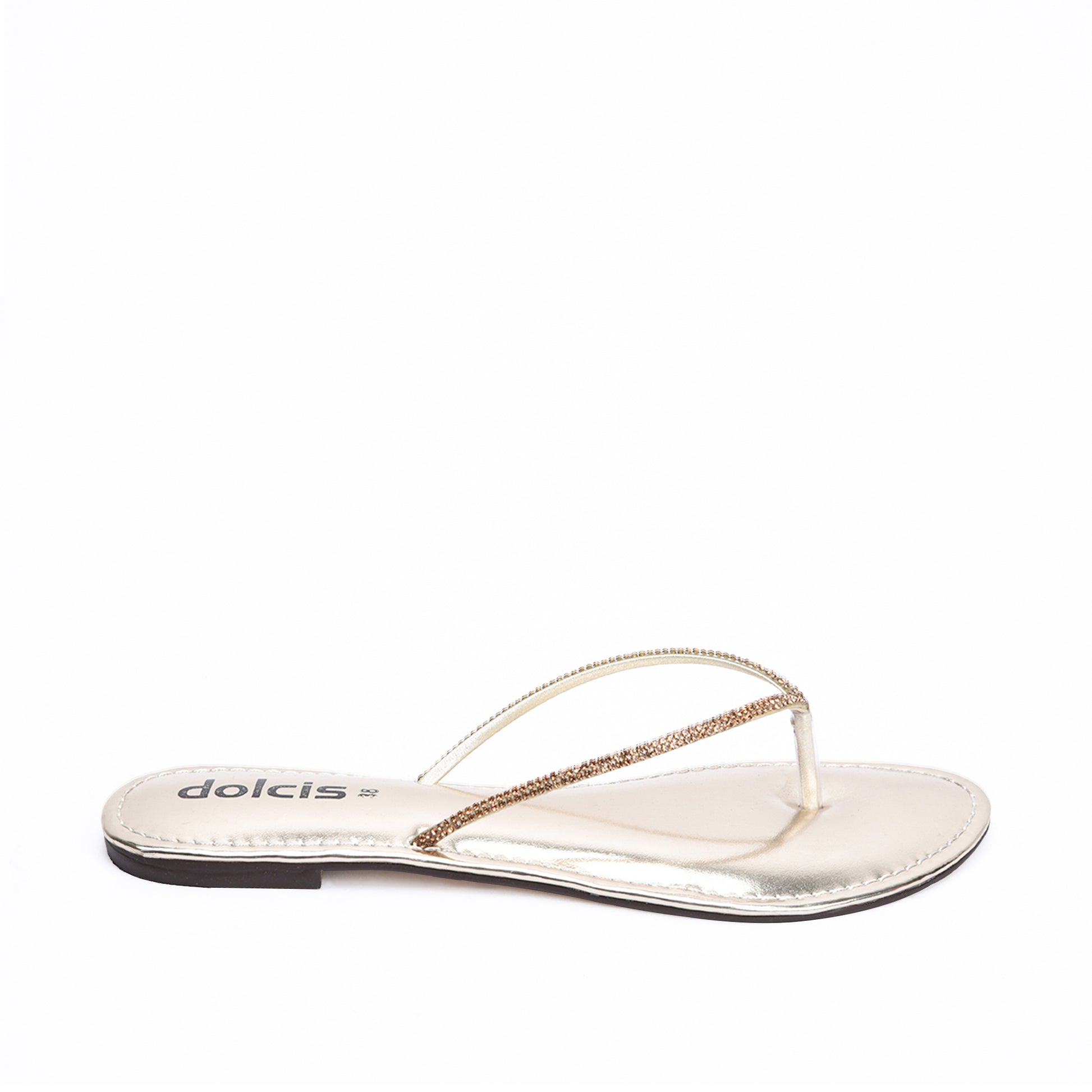 Glamorous Gold Patent Leather Flip Flops Slippers | 717R-X
