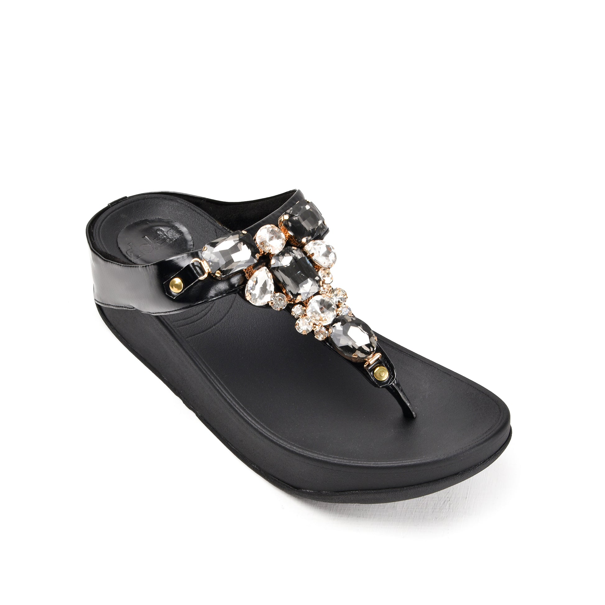 Elegant Black Jeweled Wedge Slippers | 720R-C