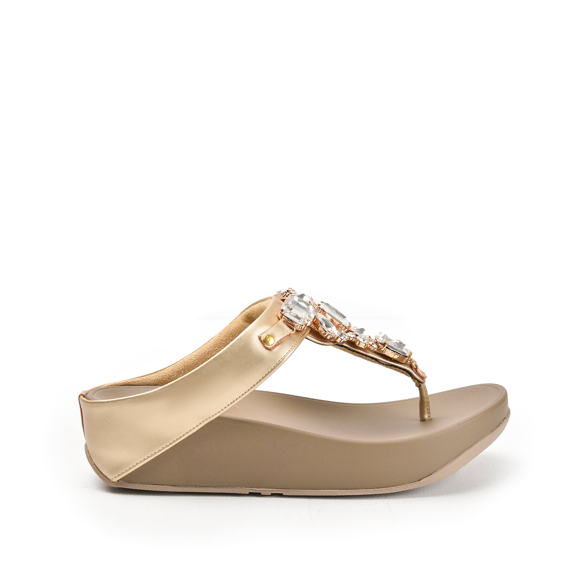 Elegant Gold Jeweled Wedge Slippers | 720R-X