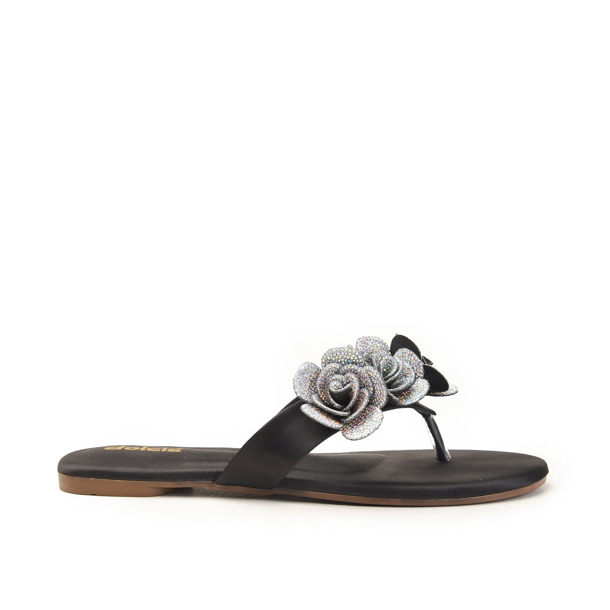 Black Floral Flat Sandals for Women Slippers | 789R-C