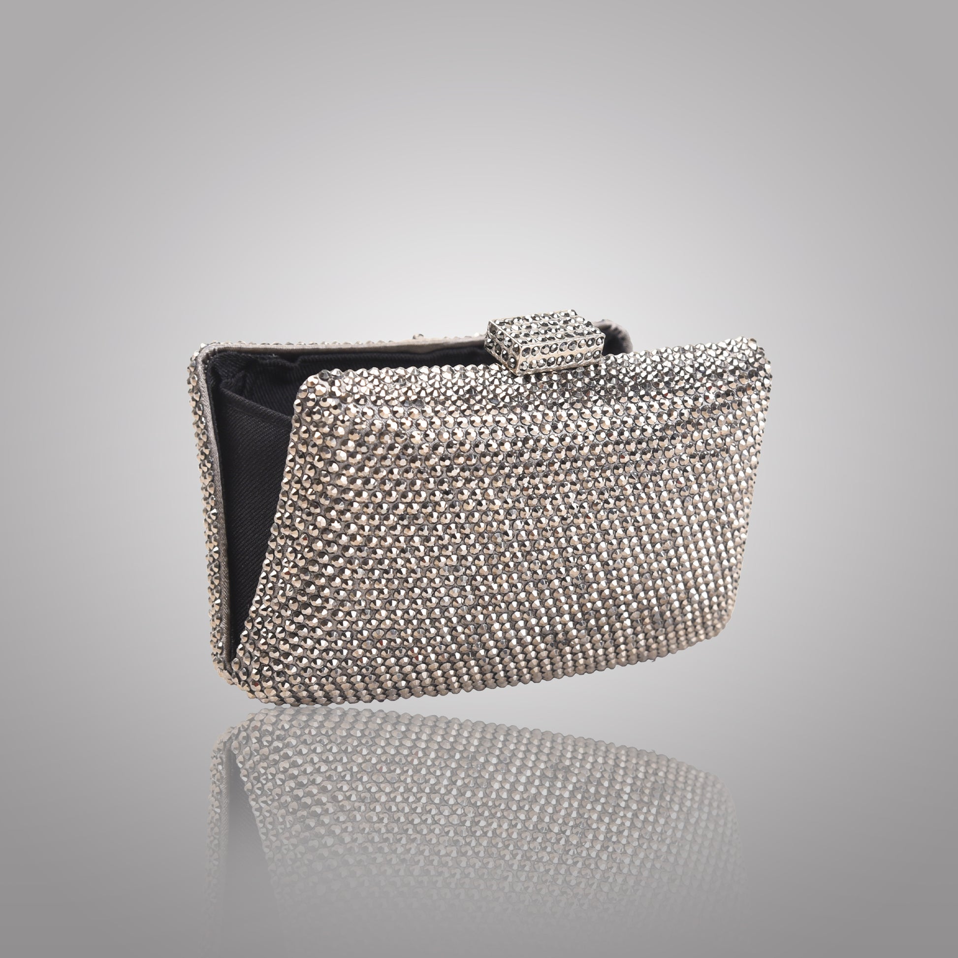 Elegant Grey Rectangular Swarovski Clutch | C1341-G