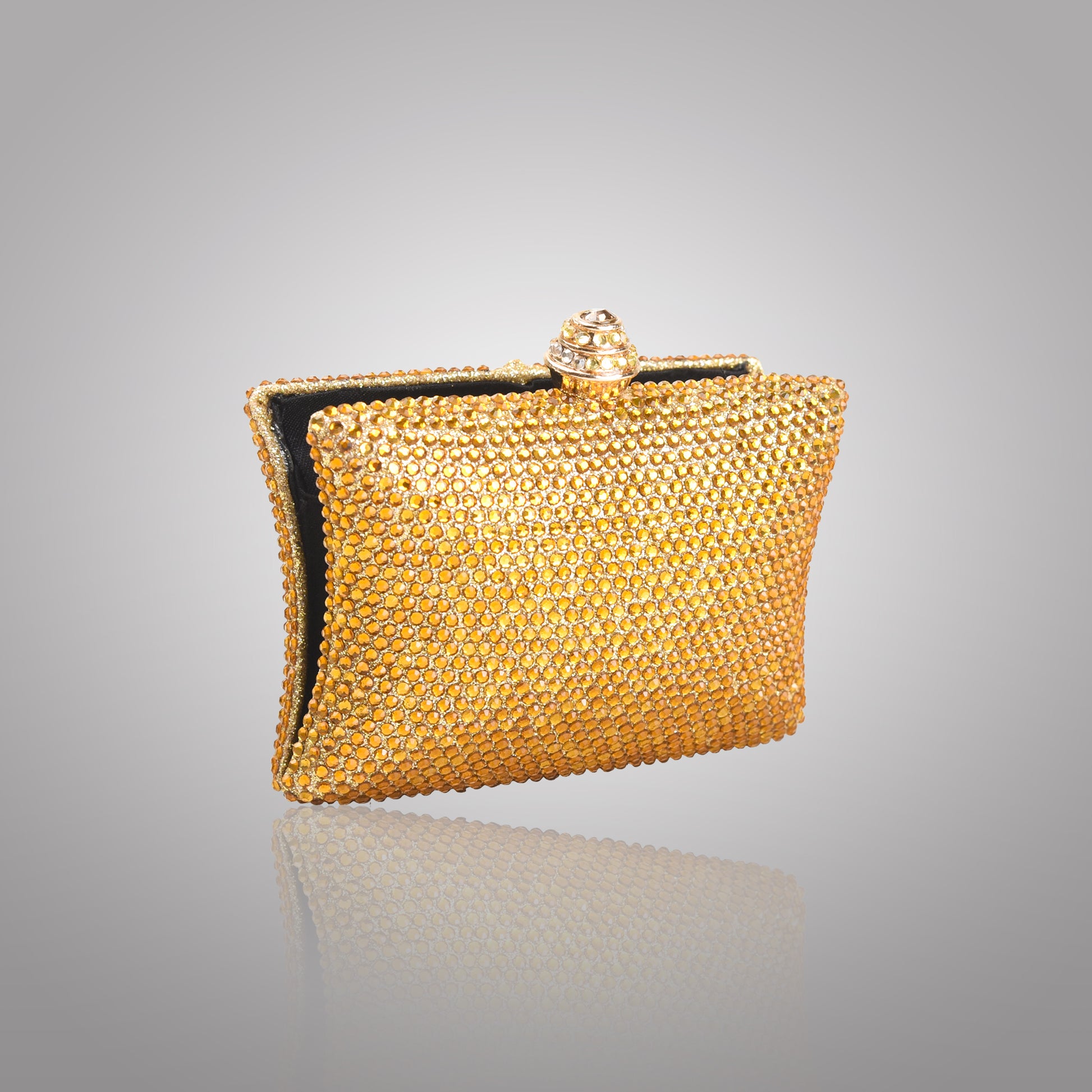 Elegant Golden Rectangular Swarovski Clutch | C1434-BX