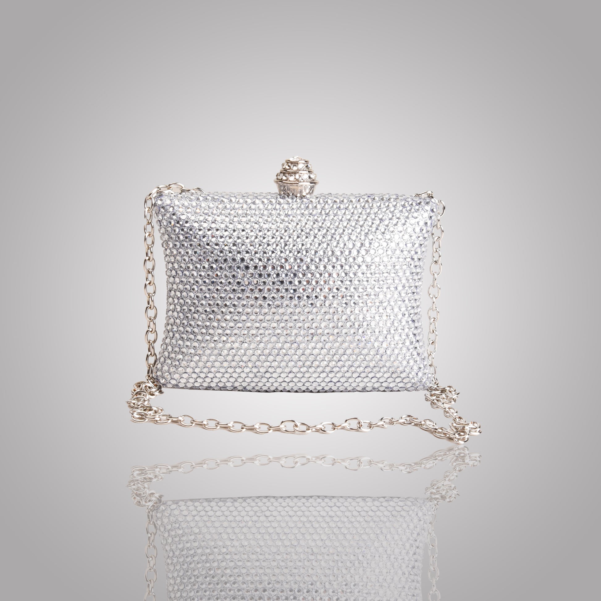 Elegant Silver Rectangular Swarovski Clutch | C1434-S