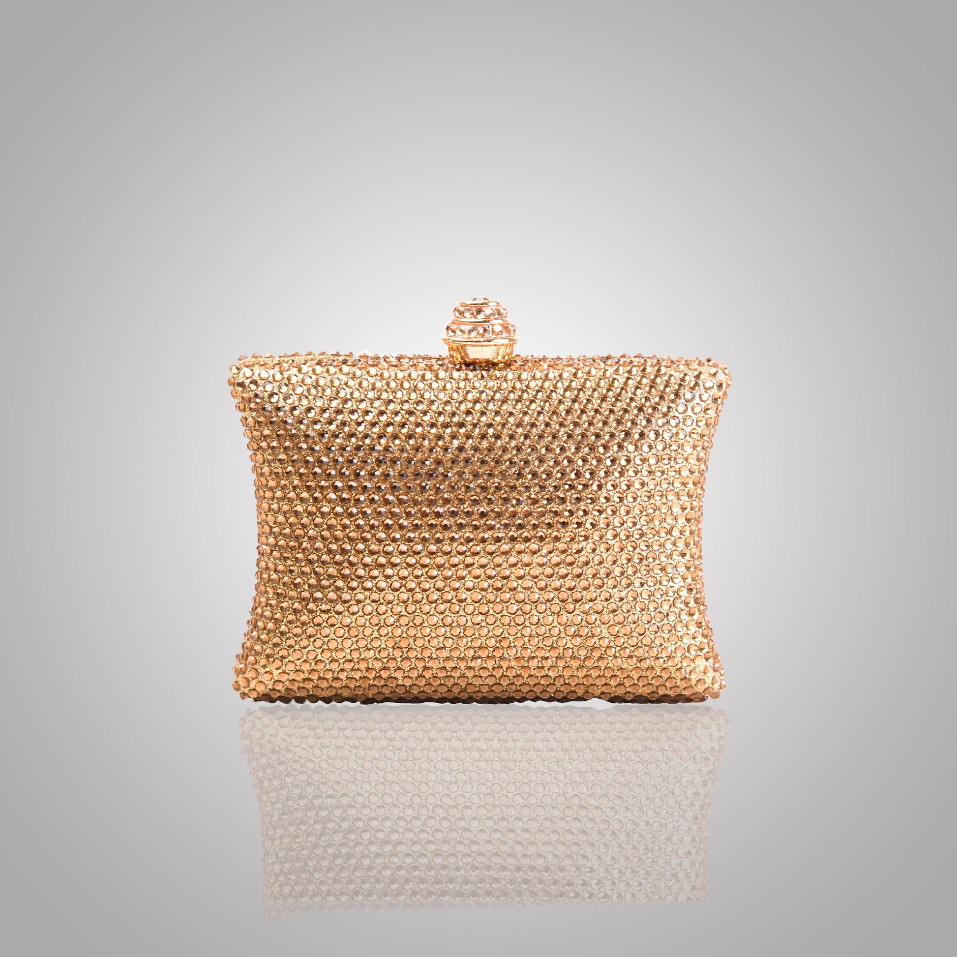 Elegant Golden Rectangular Swarovski Clutch | C1434-X